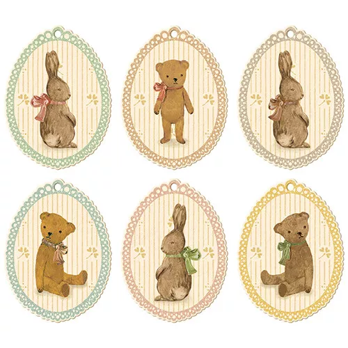 Twaalf nostalgische cadeau hangers ‘Bunnies and Teddies’ van het Deense merk Maileg. Lieflijk en handig om de namen van ontvangers op te schrijven en om cadeaus extra te versieren.