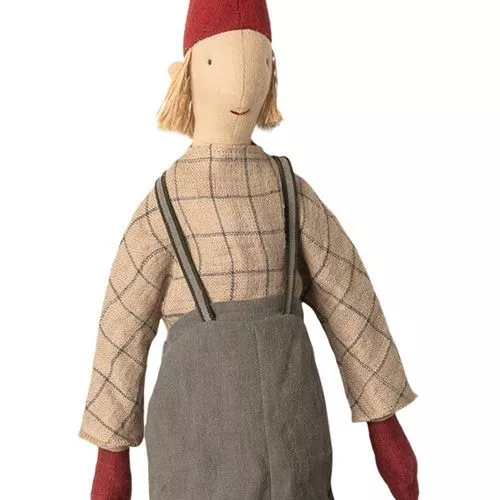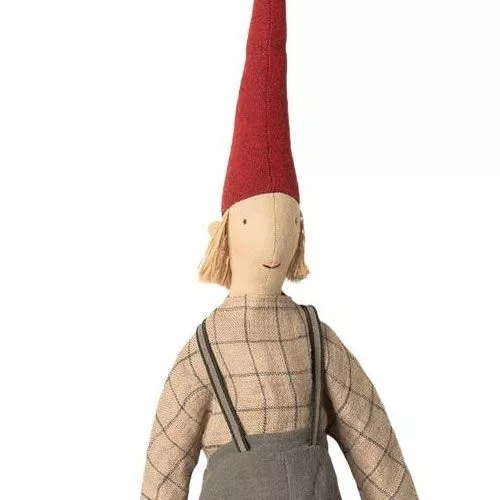 Een feestelijke, decoratieve ‘Maxi Pixy Lukas’ van het Deense merk Maileg. De sprookjes lappenpop heeft geborduurde oogjes en een klein, rood mondje. Met zijn vriendelijke gezicht, rode puntmuts en linnen tuinbroek ziet hij er hartverwarmend uit.