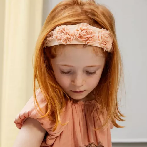 Geef een finishing touch aan de outfit met deze modieuze kinderhaarband ‘Flower – Melon’ van het Deense merk Maileg. De brede haarband is versierd met mooi gerimpelde bloembladen en door de rekbaarheid zit hij comfortabel en stevig om het hoofd.