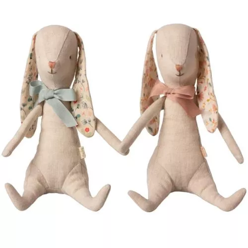 ‘Bunny Albina’ van het Deense merk Maileg is een lieflijk konijntje voor kleine dromers. De knuffel heeft geborduurde oogjes en snoet en hangoren met gebloemde voering. Om haar hals draagt de linnen knuffel een roze strik. In de voorpootjes van de konijnenknuffel zitten magneetjes, zodat ze zich vast kan houden aan metalen oppervlakken.