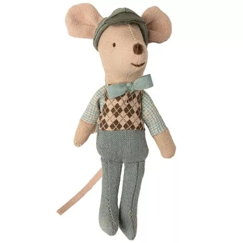 Knuffelmuis ‘kleine broer’ maakt zich klaar voor een heerlijk ritje in deze vintage poppenauto ‘Mouse car w. garage – Yellow’ van het Deense merk Maileg. Een kleinood voor kleine en grote kinderen.