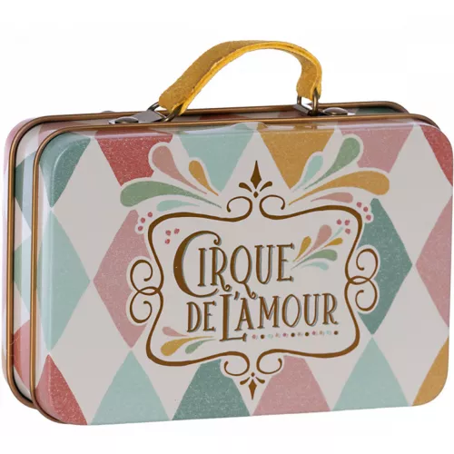 Met een vrolijk gekleurd printje is dit kleine metalen koffertje ‘Suitcase, Metal – Harlequin’ geschikt om spulletjes van de Maileg muizenfamilie in op te bergen.
