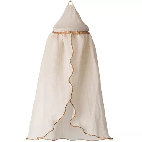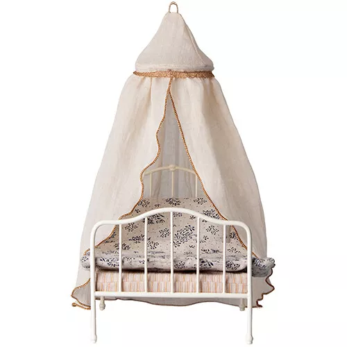 Creëer een prinsessenpoppenbedje of romantisch plekje bij de poppenbank met de poppenbedhemel ‘Cream’ van het Deense merk Maileg.