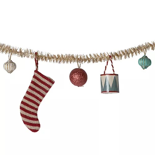 Geef poppenhuisbewoners een stralende kerst met deze ‘Christmas garland’ van het Deense merk Maileg. De slinger bevat verschillende ornamenten en brengt poppenhuizen in een kerstsfeer.