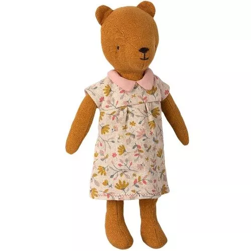 Ook beren willen mooie kleren. Met deze bloemetjes jurk ‘Dress for Teddy Mum’ van het Deense merk Maileg hult berenknuffel Teddy Mum zich in een gezellige, zomerse jurk.
