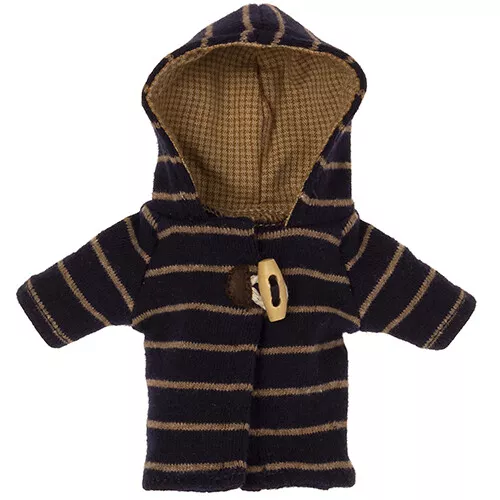 Ook beren willen behaaglijk gekleed gaan. Met deze poppenkleding ‘Duffle coat’ van het Deense merk Maileg hult berenknuffel Teddy Junior zich in een klassieke duffel jas met houtje touwtje sluiting en capuchon.