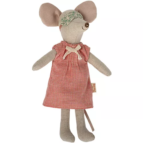 Deze comfortabele, rode nachtjapon van het Deense merk Maileg voor moedermuis staat garant voor een goede nachtrust of een gezellig pyjamafeest. De rode nachtjapon heeft een geruit motief en is versierd met een strikje. De nachtjapon heeft een fleurig oogmasker, zo wordt moedermuis niet wakker van het licht.