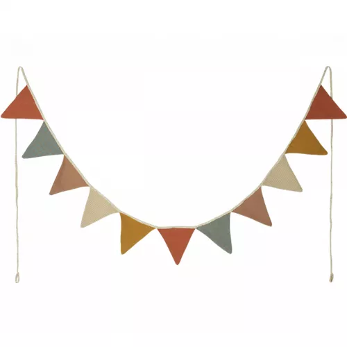Feest of geen feest, er is altijd wel een reden voor een slinger! Deze stoffen vlaggenslinger ‘Multi’ van het Deense merk Maileg telt 11 vlaggetjes van 13 cm hoog en hangen aan een stoffen glitter lijntje van 300 cm lang.