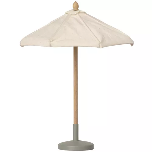 De strandparasol op poppenhuisformaat ‘Beach Umbrella’ van het Deense merk Maileg biedt knuffeltjes en popjes schaduw en verkoeling van de zon tijdens een dagje aan het strand.