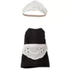 Het poppenbed is opgemaakt met een matras, deken en kussen, allemaal in een klassiek design.